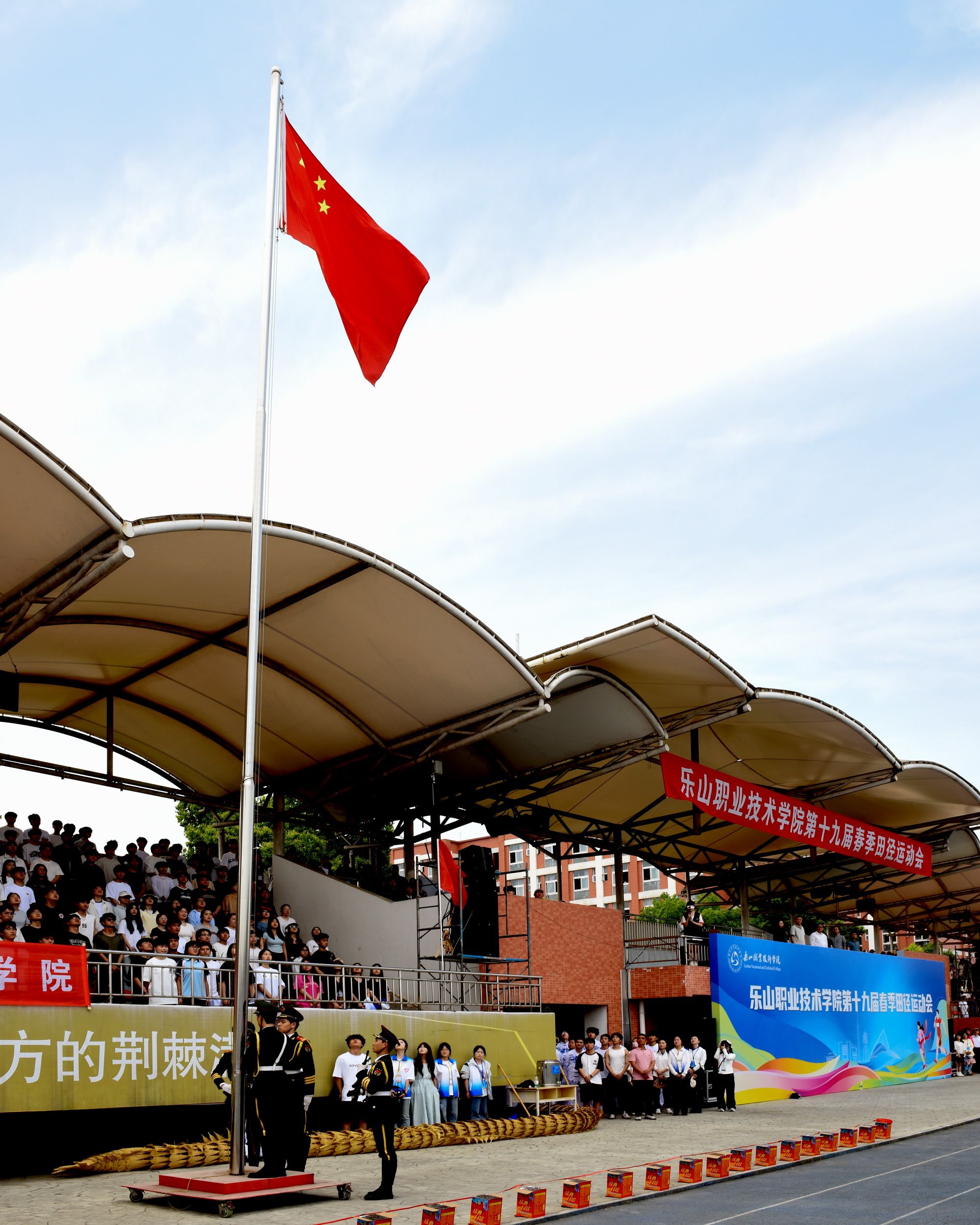 最后,学校党委书记成定彬宣布“乐山职业技术学院第十九届春季田径运动会开幕”。