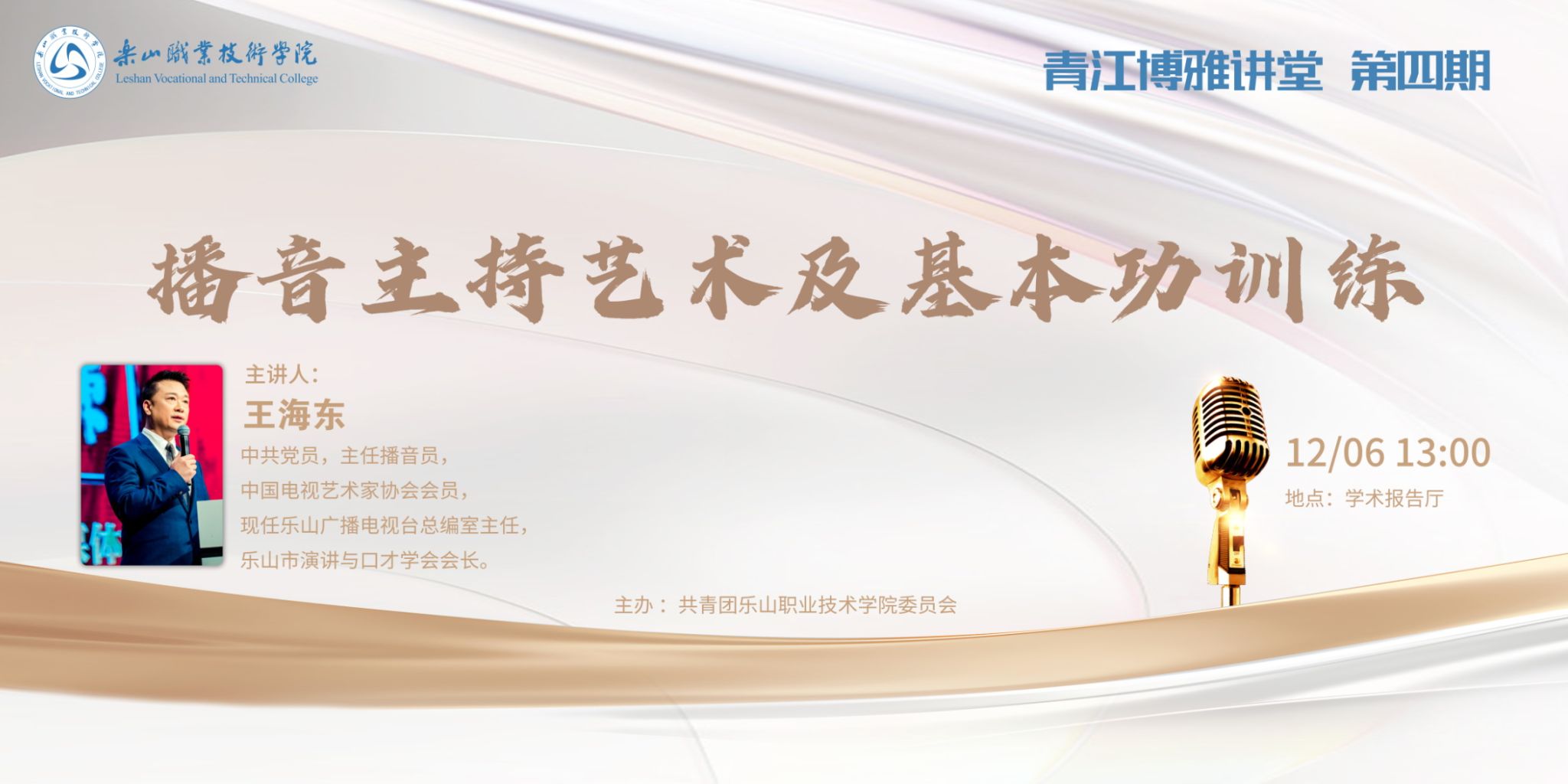 本次讲堂邀请乐山广播电视台主任播音员、乐山演讲与口才学会会长王海东主讲。以其丰富的主持经验和深厚的专业知识,为大家带来了一场理论与实践相结合、知识与艺术相交融的精彩讲座。
