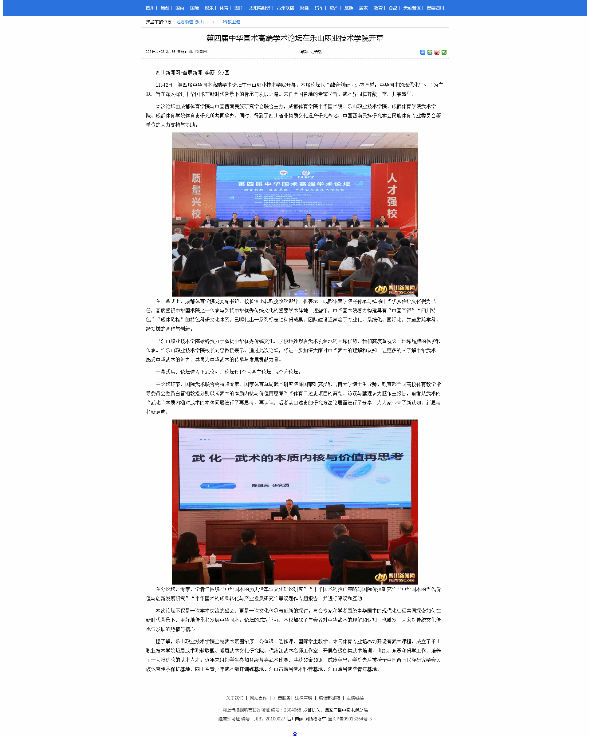 四川新闻网:第四届中华国术高端学术论坛在乐山职业技术学院开幕-尊龙凯时人生就是搏