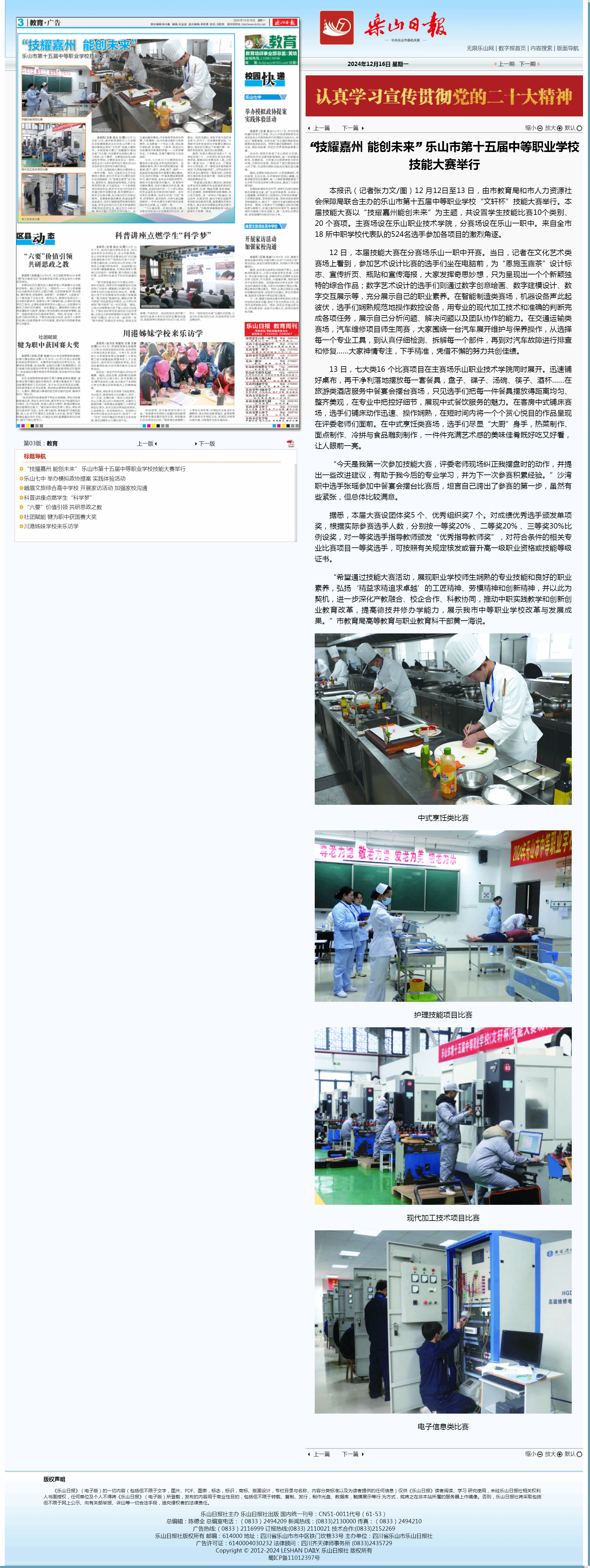 乐山日报:“技耀嘉州 能创未来” 乐山市第十五届中等职业学校技能大赛举行-尊龙凯时人生就是搏