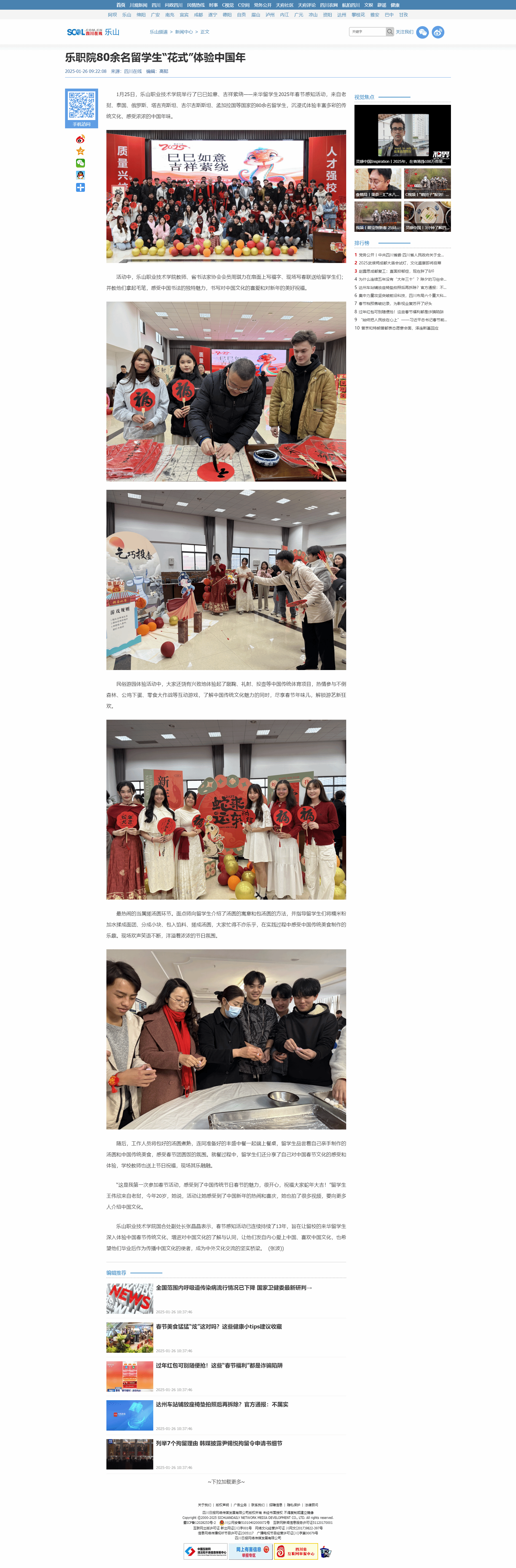 学习强国:“巳巳如意 吉祥萦绕”——乐山职业技术学院80余名来华留学生沉浸式体验中国年