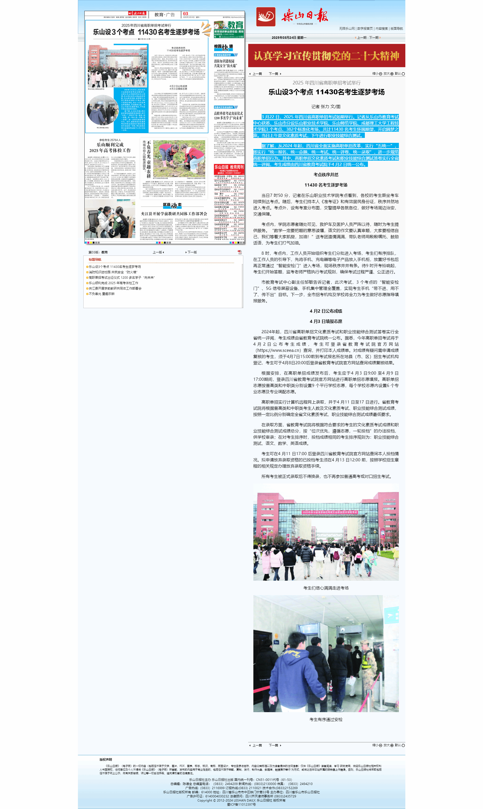 乐山日报:2025 年四川省高职单招考试举行 乐山设3个考点 11430名考生逐梦考场-尊龙凯时人生就是搏