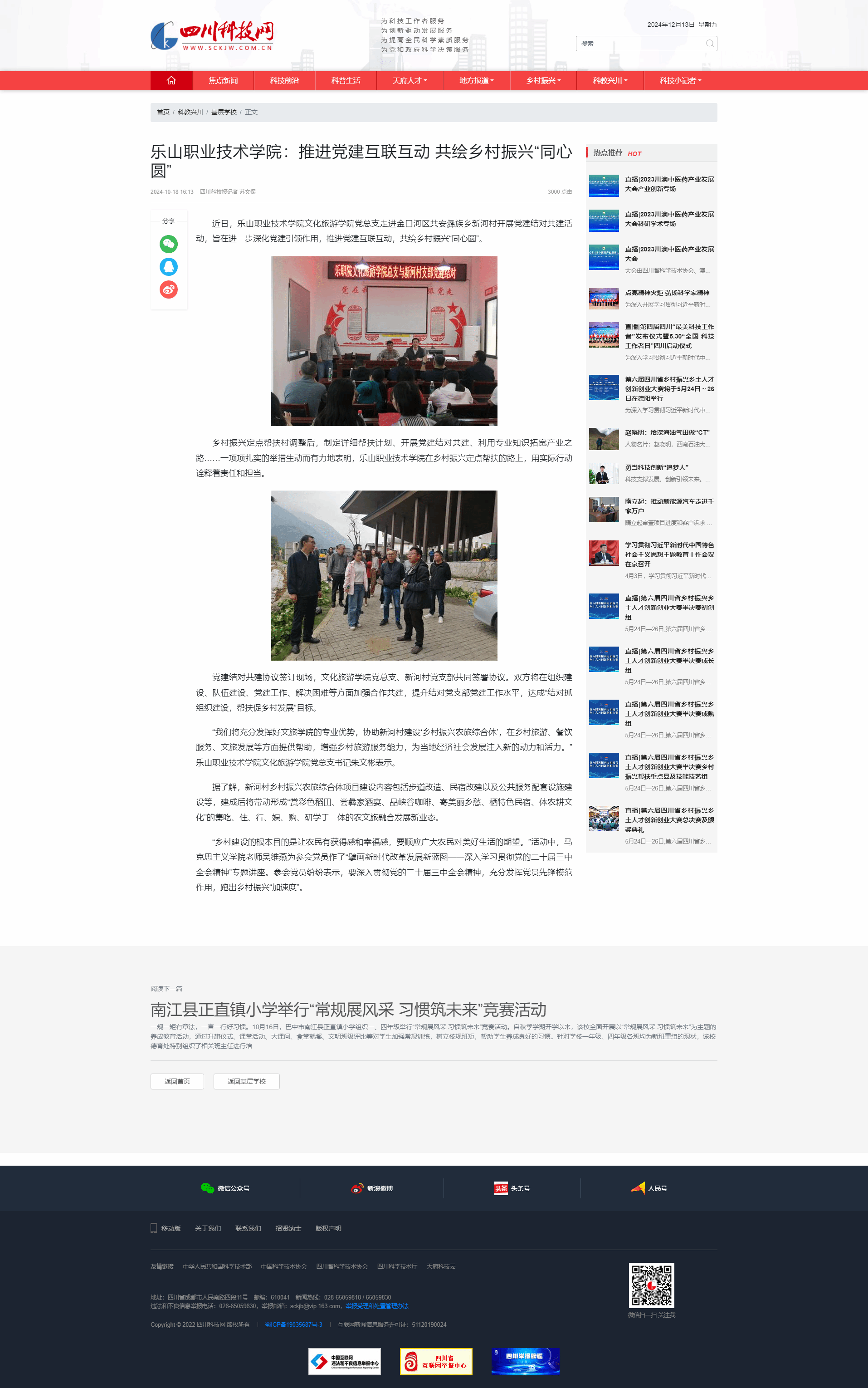 四川科技网:乐山职业技术学院:推进党建互联互动 共绘乡村振兴“同心圆”-尊龙凯时人生就是搏