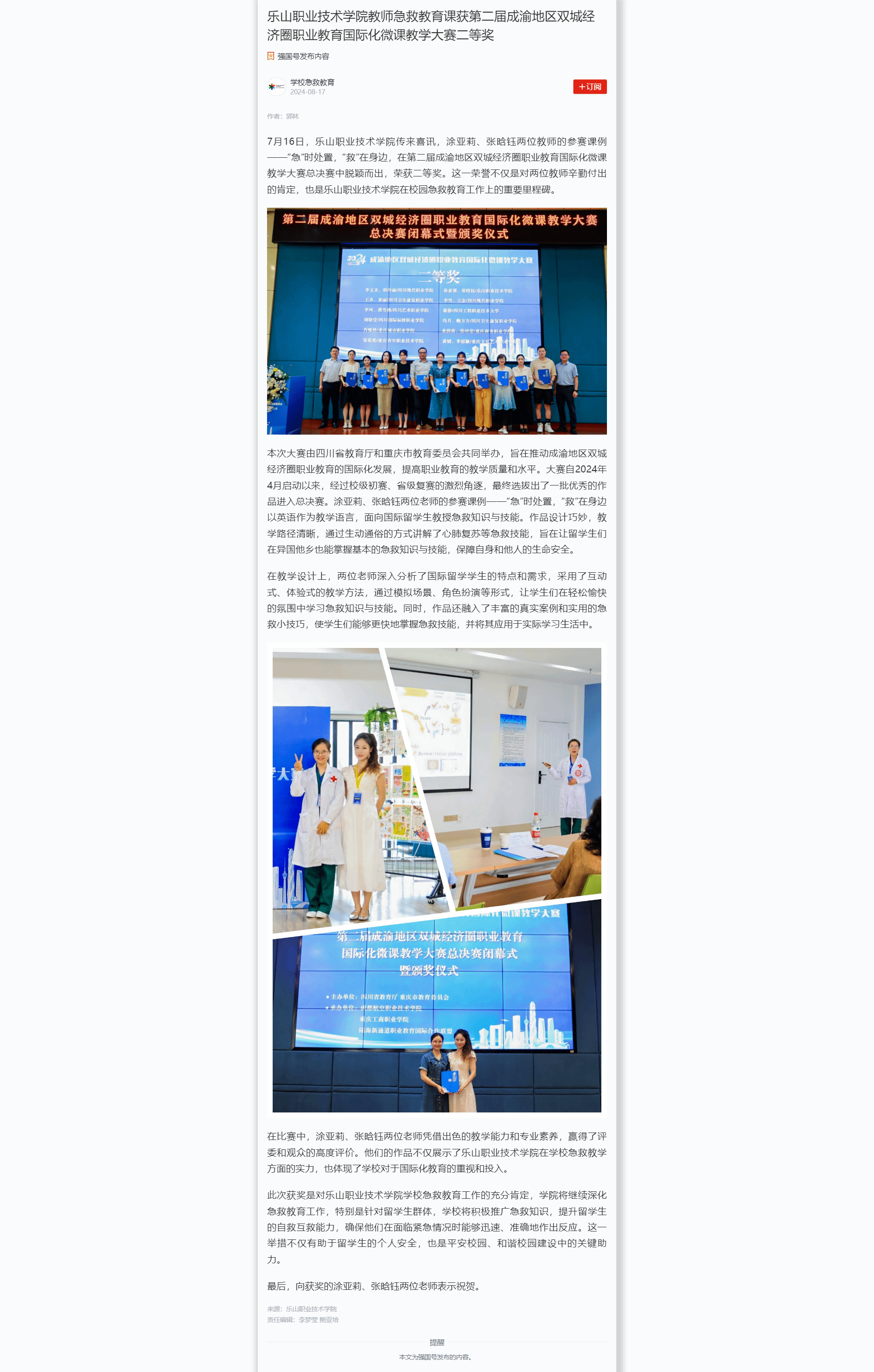 学习强国:乐山职业技术学院教师急救教育课获第二届成渝地区双城经济圈职业教育国际化-尊龙凯时人生就是搏