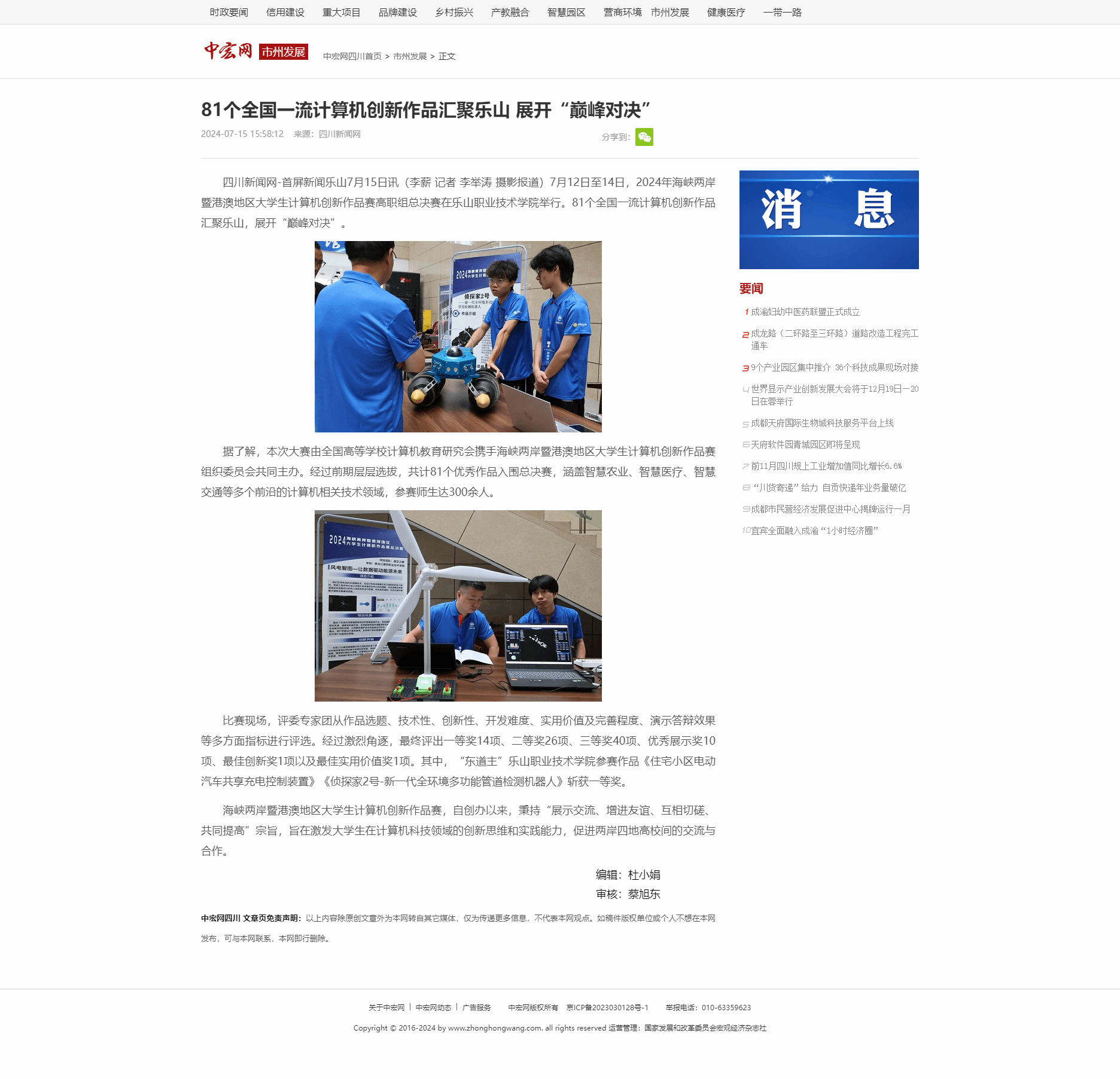 中宏网:81个全国一流计算机创新作品汇聚乐山 展开“巅峰对决”-尊龙凯时人生就是搏
