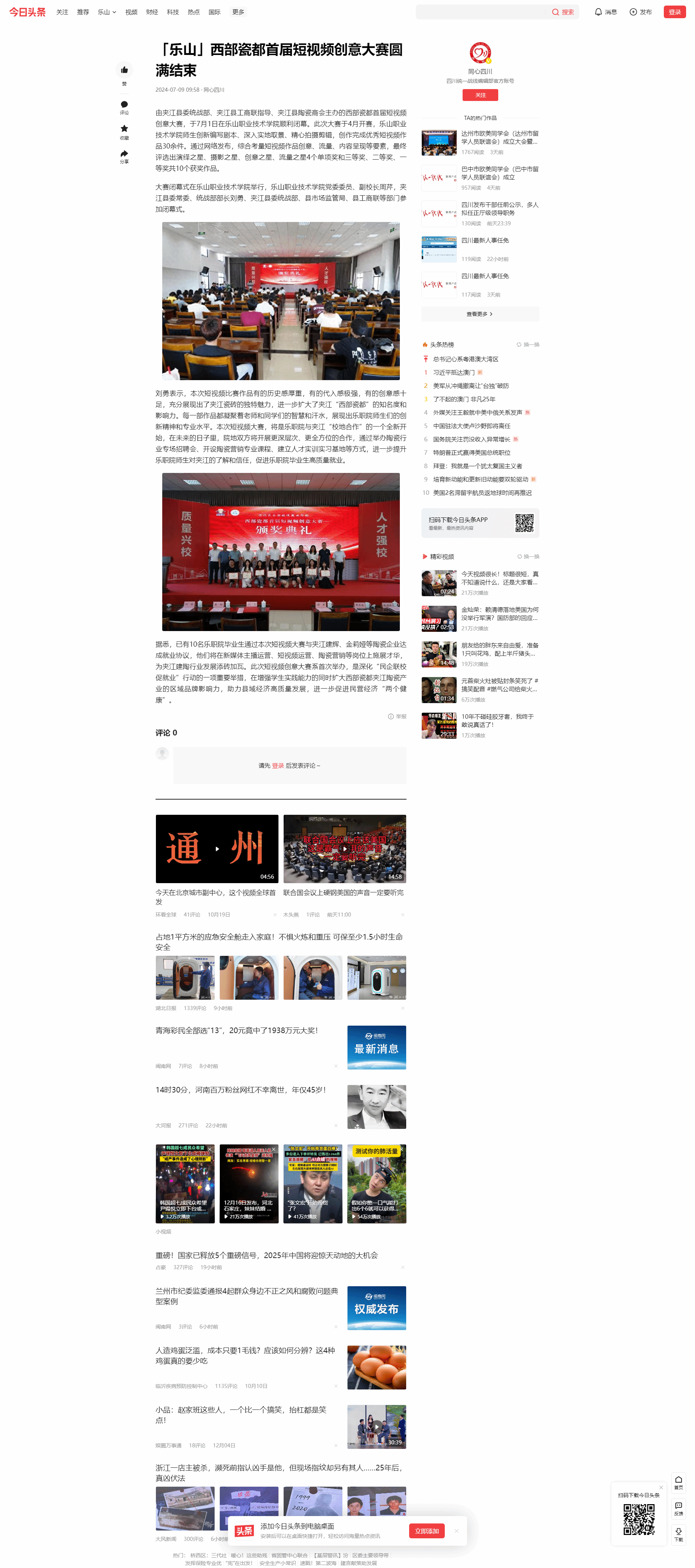 今日头条:「乐山」西部瓷都首届短视频创意大赛圆满结束-尊龙凯时人生就是搏
