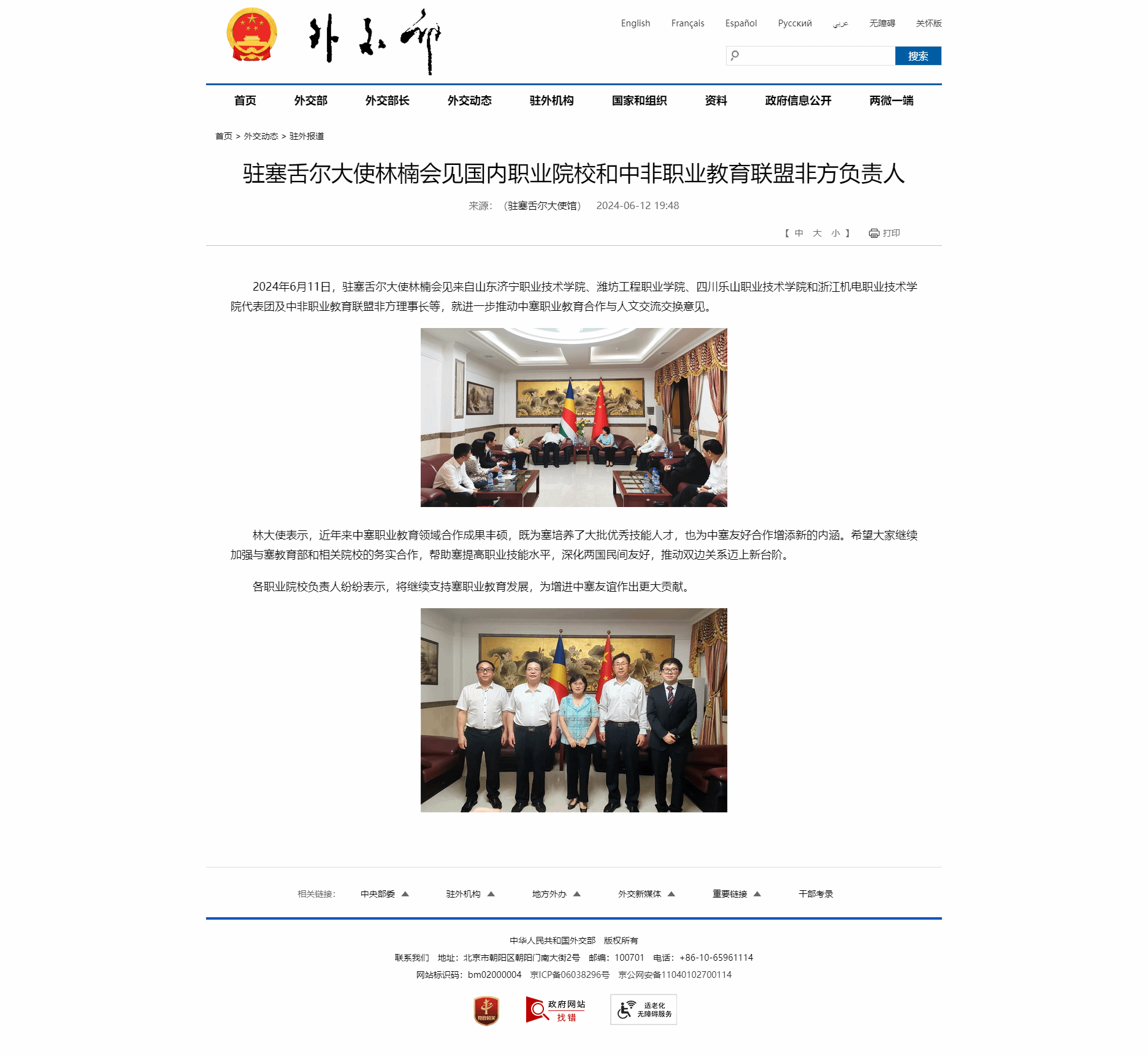 外交部:驻塞舌尔大使林楠会见国内职业院校和中非职业教育联盟非方负责人-尊龙凯时人生就是搏