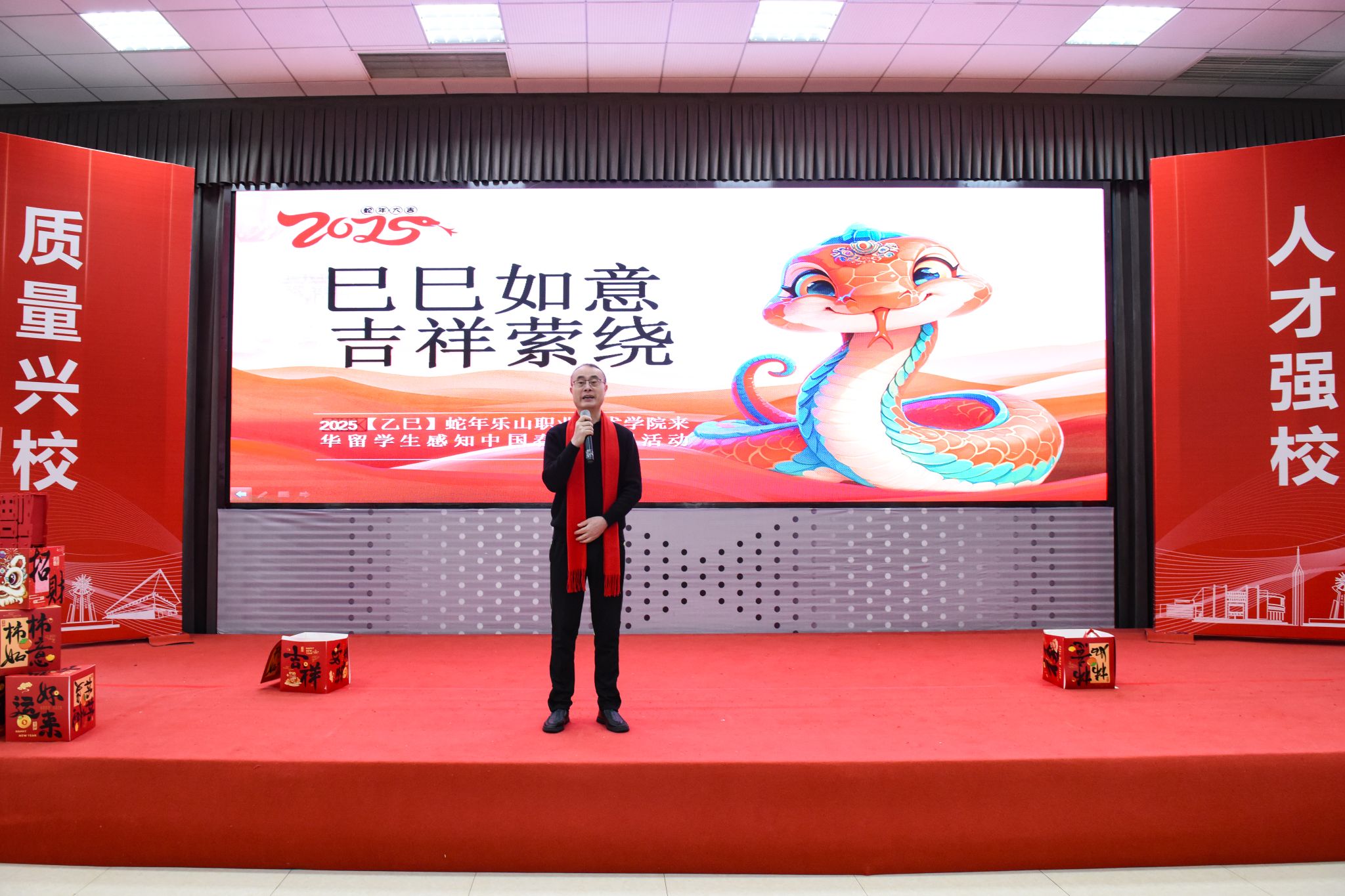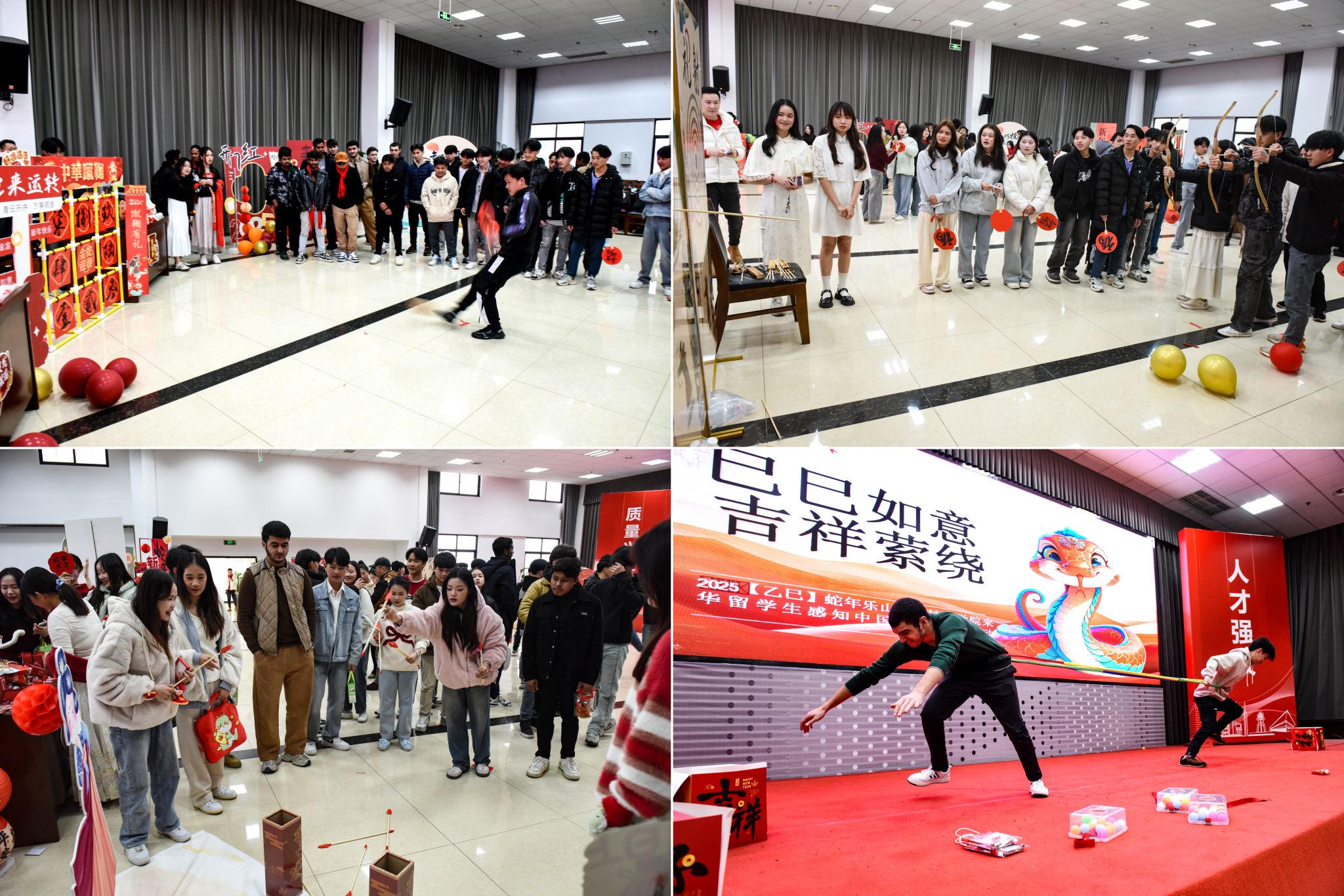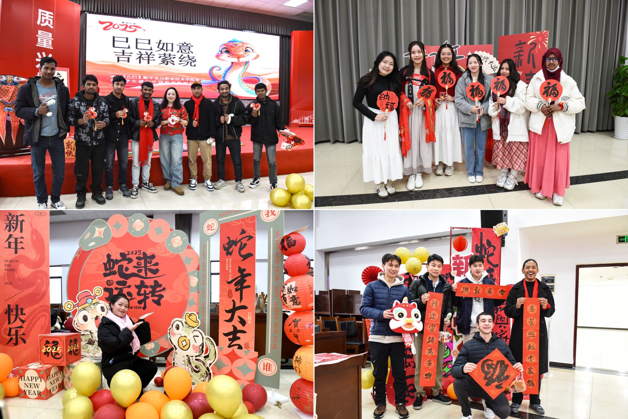 1月25日,乐山职业技术学院举行了巳巳如意 吉祥萦绕——来华留学生2025年春节感知活动,来自老挝、泰国、俄罗斯、塔吉克斯坦、吉尔吉斯斯坦、孟加拉国等国家的80余名留学生,沉浸式体验丰富多彩的传统文化,感受浓浓的中国年味。