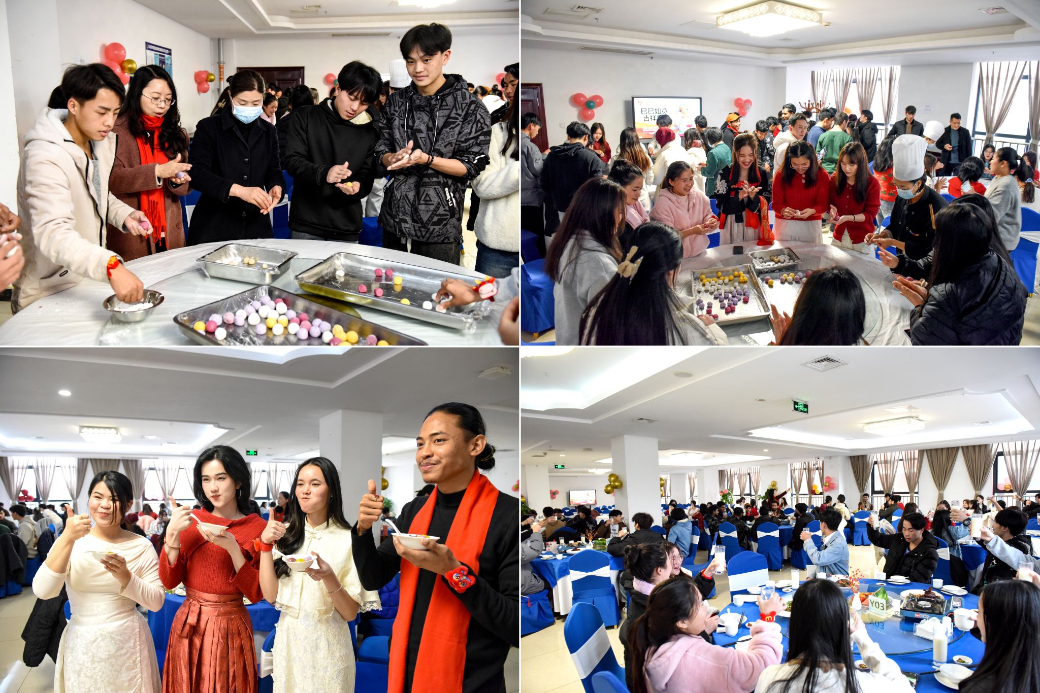 最热闹的当数搓汤圆环节,面点师向留学生介绍了汤圆的寓意和包汤圆的方法,并指导留学生们如何将糯米粉加水揉成面团,大家将面团分成小块,包入馅料,搓成汤圆,忙得不亦乐乎,在实践过程中感受传统美食制作的乐趣。现场欢声笑语不断,洋溢着浓浓的节日氛围。