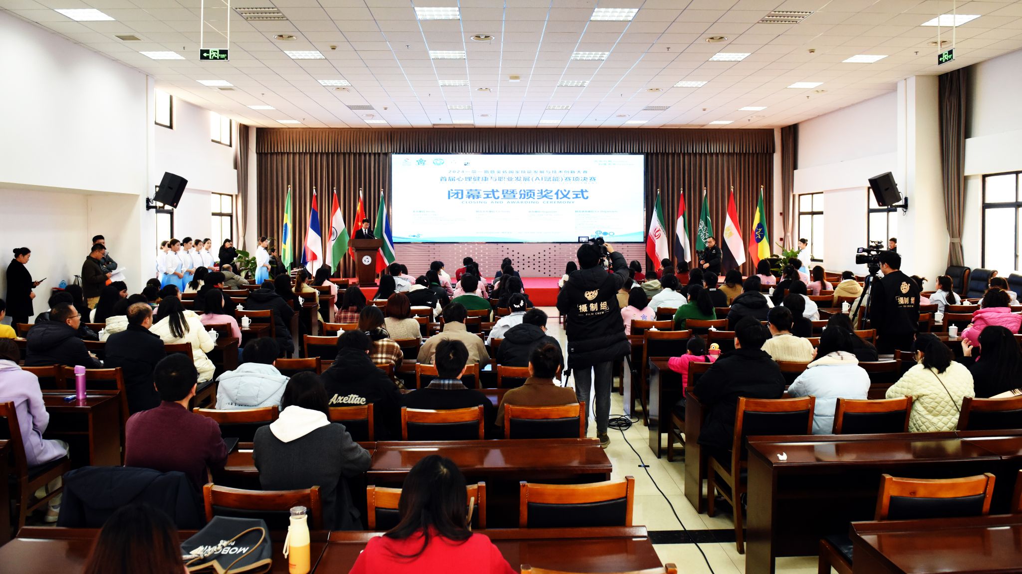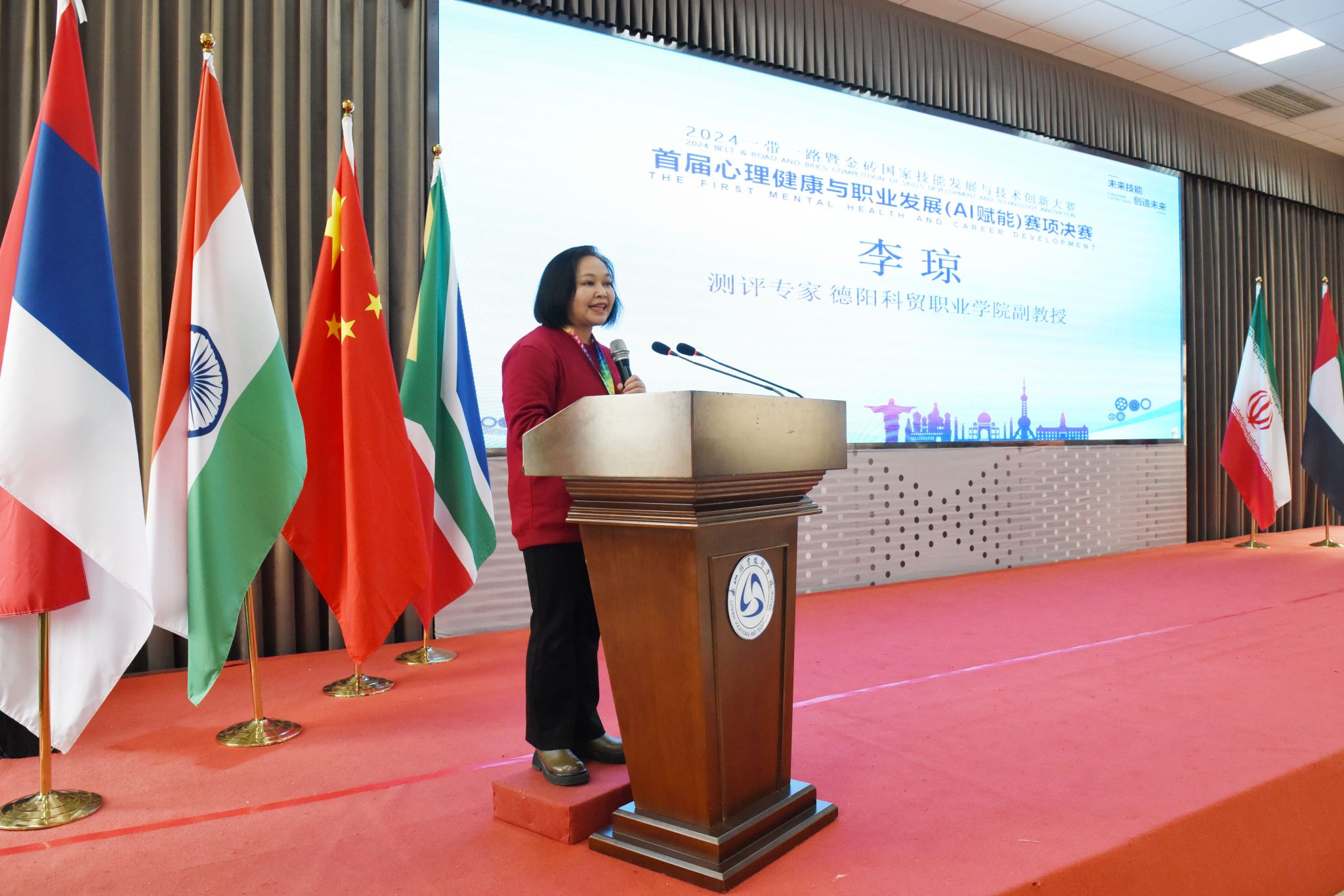 12月30日,2024“一带一路”暨金砖国家技能发展与技术创新大赛首届心理健康与职业发展(ai赋能)赛项决赛在我校顺利闭幕,标志着为期3天的技能大赛圆满落下帷幕。金砖国家技能发展与技术创新大赛组委会执委会办公室主任宋小琴,北京企学研教育科技研究院竞赛合作处主任周海燕,赛项指导专家兼测评组长、国家卫生健康委能力建设与继续教育中心原学术部主任刘晨教授,赛项仲裁长、北京大学心理与认知科学学院李同归教授,德阳科贸职业学院李琼副教授,山东中科慧心智能科技有限公司副总经理张兆圣,学校党委副书记张佳等校内外领导及嘉宾出席闭幕式,闭幕式由学校党委委员、副校长封家福主持。