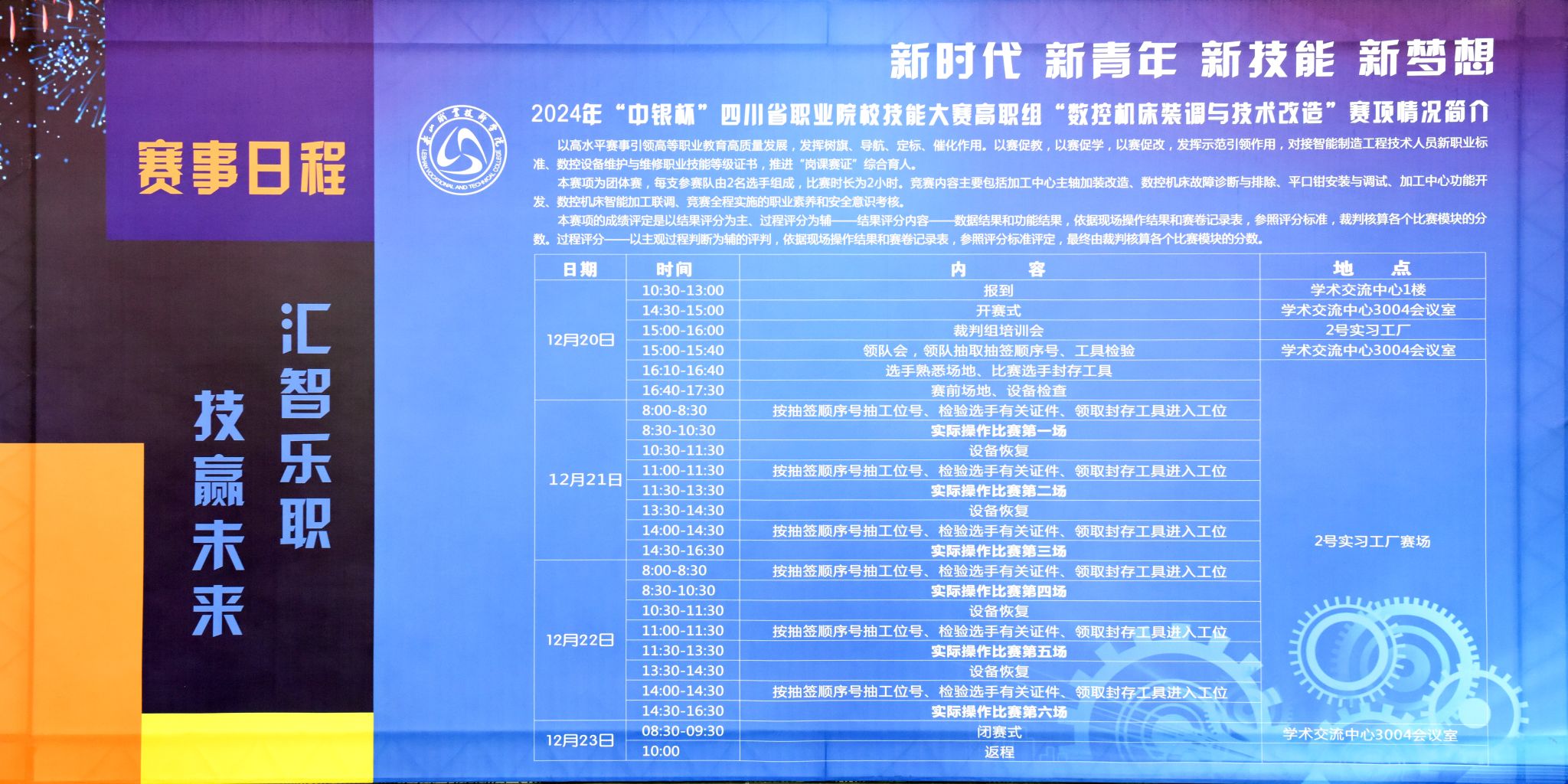 12月20日-22日,由四川省教育厅主办的2024年“中银杯”四川省职业院校技能大赛数控机床装调与技术改造赛项在乐山职业技术学院举行,来自全省15所高职院校的42支参赛队的84名选手同台竞技。