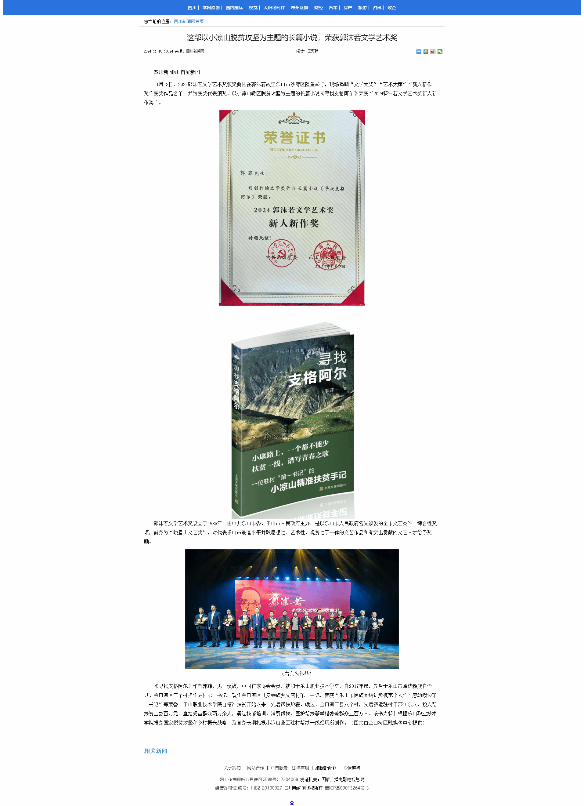 四川新闻网:这部以小凉山脱贫攻坚为主题的长篇小说,荣获郭沫若文学艺术奖-尊龙凯时人生就是搏