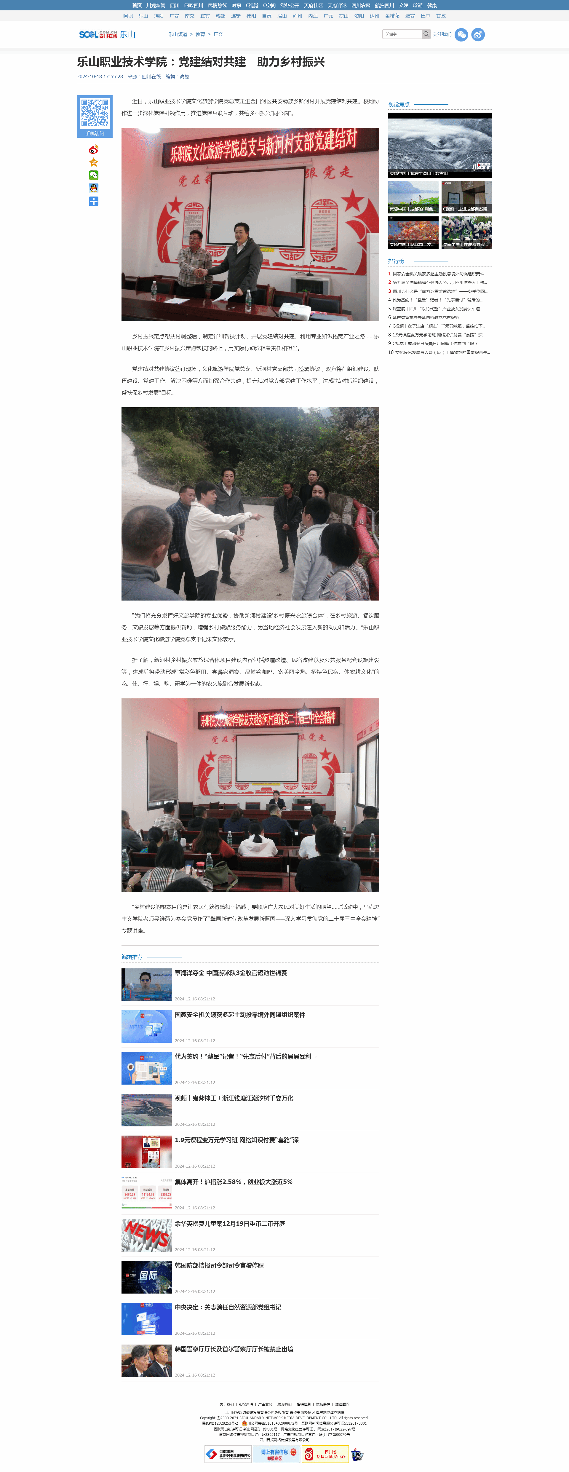 四川科技网:乐山职业技术学院:推进党建互联互动 共绘乡村振兴“同心圆”