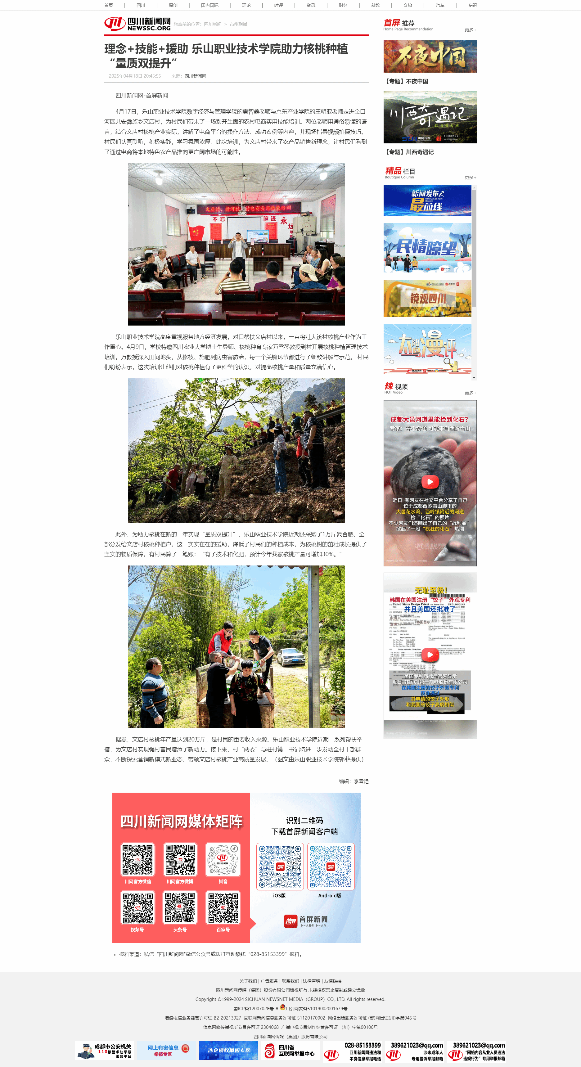 四川新闻网:理念 技能 援助 乐山职业技术学院助力核桃种植“量质双提升”-尊龙凯时人生就是搏