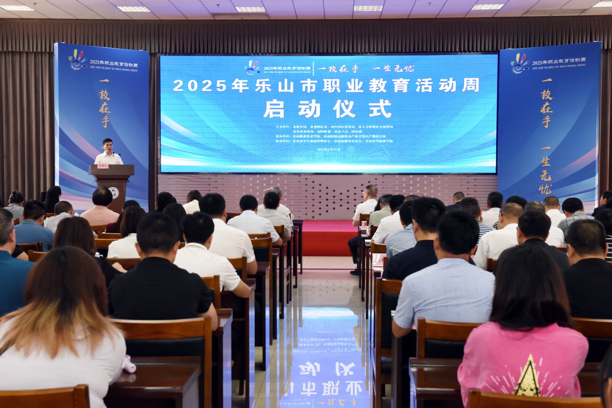 2025年5月15日,以“一技在手、一生无忧”为主题的2025乐山市职业教育活动周启动仪式在乐山职业技术学院举行,乐山市人大常委会副主任周伦斌出席活动并宣布职业教育活动周启动。乐山市有关部门负责同志,3个省级现代产业学院负责同志,各县(市、区)政府、教育行政部门分管负责同志,全市中职(技工)学校校长、普职融通班结对的普通高中学校校长、部分初中学校校长代表、企业代表等200余人参加活动。乐山市教育局总督学陈凯主持开幕式。